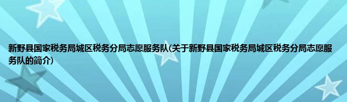 1、 新野县国家税务局城区税务分局志愿服务队是由新野县志愿服务联合会领导下的志愿团体。