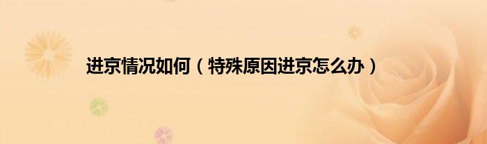 大家好,精选小编来为大家解答以上问题。进京情况如何,特殊原因进京怎么办很多人还不知道,现在让我们一起来看看吧!