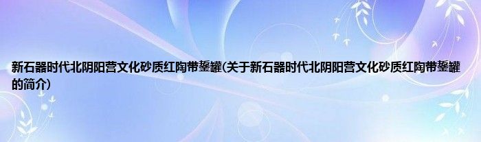 本文关于新石器时代北阴阳营文化砂质红陶带鋬罐的简介就讲解完毕,希望对大家有所帮助。