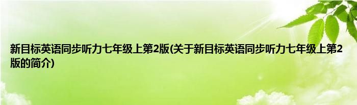 大家好,新目标英语同步听力七年级上第2版,关于新目标英语同步听力七年级上第2版的简介很多人还不知道,现在让我们一起来看看吧!