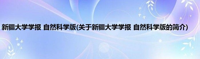大家好,新疆大学学报 自然科学版,关于新疆大学学报 自然科学版的简介很多人还不知道,现在让我们一起来看看吧!