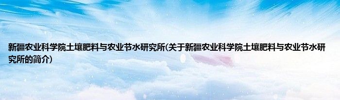 1、 新疆农业科学院土壤肥料与农业节水研究所建立于1979年2月,原名新疆农业科学院土壤肥料研究所,同时加挂新疆新型肥料肥料研究中心。