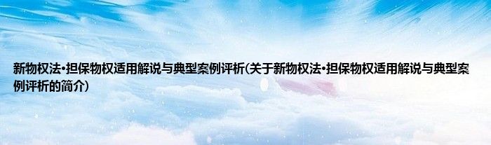 本文关于新物权法·担保物权适用解说与典型案例评析的简介就讲解完毕,希望对大家有所帮助。