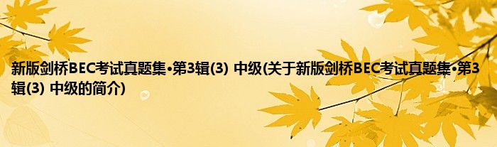 本文关于新版剑桥BEC考试真题集·第3辑(3) 中级的简介就讲解完毕,希望对大家有所帮助。