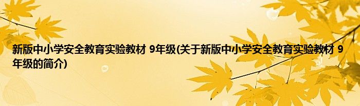 本文关于新版中小学安全教育实验教材 9年级的简介就讲解完毕,希望对大家有所帮助。