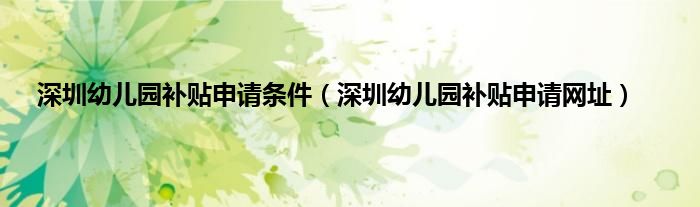 大家好,精选小编来为大家解答以上问题。深圳幼儿园补贴申请条件,深圳幼儿园补贴申请网址很多人还不知道,现在让我们一起来看看吧!