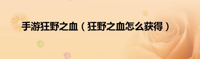 大家好,精选小编来为大家解答以上问题。手游狂野之血,狂野之血怎么获得很多人还不知道,现在让我们一起来看看吧!