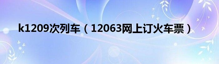 大家好,精选小编来为大家解答以上问题。k1209次列车,12063网上订火车票很多人还不知道,现在让我们一起来看看吧!