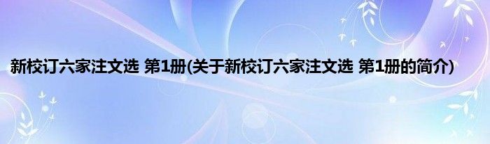 本文关于新校订六家注文选 第1册的简介就讲解完毕,希望对大家有所帮助。