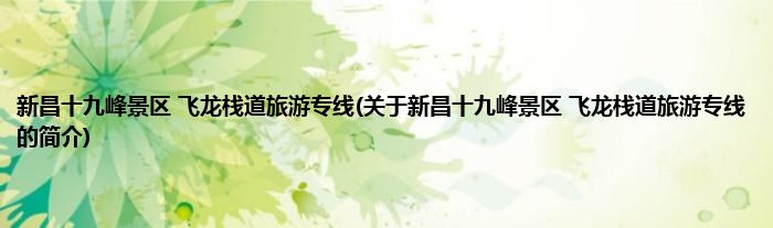 本文关于新昌十九峰景区 飞龙栈道旅游专线的简介就讲解完毕,希望对大家有所帮助。