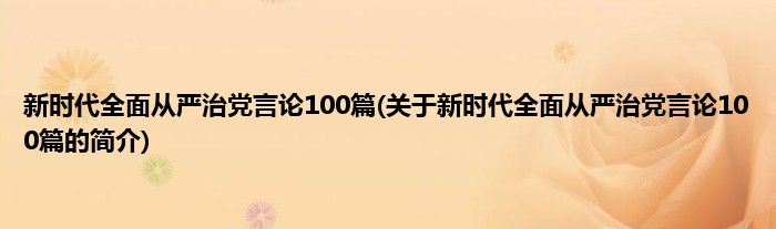 本文关于新时代全面从严治党言论100篇的简介就讲解完毕,希望对大家有所帮助。