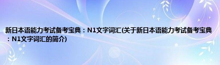 本文关于新日本语能力考试备考宝典:N1文字词汇的简介就讲解完毕,希望对大家有所帮助。