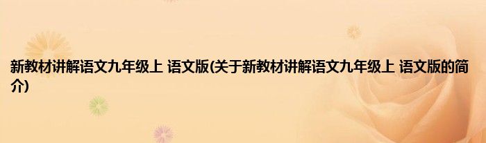 新教材讲解语文九年级上语文版(关于新教材讲解语文九年级上语文版的简介)