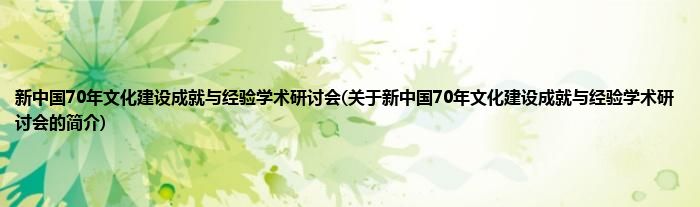 大家好,新中国70年文化建设成就与经验学术研讨会,关于新中国70年文化建设成就与经验学术研讨会的简介很多人还不知道,现在让我们一起来看看吧!