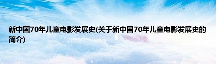 大家好,新中国70年儿童电影发展史,关于新中国70年儿童电影发展史的简介很多人还不知道,现在让我们一起来看看吧!