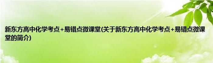 本文关于新东方高中化学考点+易错点微课堂的简介就讲解完毕,希望对大家有所帮助。
