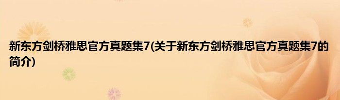 本文关于新东方剑桥雅思官方真题集7的简介就讲解完毕,希望对大家有所帮助。