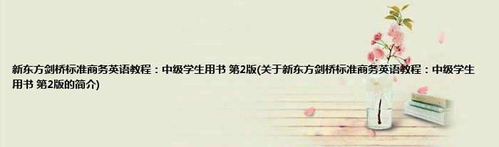 1、 《新东方剑桥标准商务英语教程:中级学生用书(第2版)》是西安交通大学出版社出版的图书,分为初、中、高三个级别。