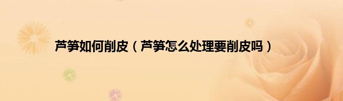 一、 芦笋怎么处理要削皮吗