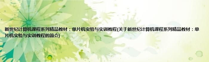 大家好,新世纪计算机课程系列精品教材:单片机实验与实训教程,关于新世纪计算机课程系列精品教材:单片机实验与实训教程的简介很多人还不知道,现在让我们一起来看看吧!