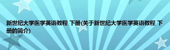 大家好,新世纪大学医学英语教程 下册,关于新世纪大学医学英语教程 下册的简介很多人还不知道,现在让我们一起来看看吧!