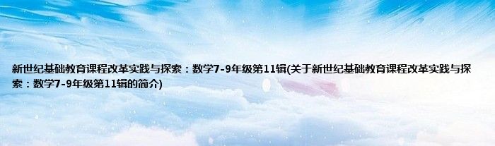 本文关于新世纪基础教育课程改革实践与探索:数学7-9年级第11辑的简介就讲解完毕,希望对大家有所帮助。