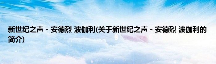 本文关于新世纪之声-安德烈。波伽利的简介就讲解完毕,希望对大家有所帮助。