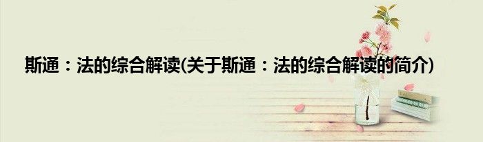 本文关于斯通:法的综合解读的简介就讲解完毕,希望对大家有所帮助。