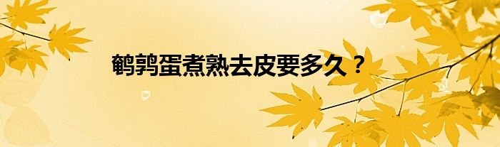 大家好,小科来为大家解答以上问题。鹌鹑蛋煮熟去皮要多久?很多人还不知道,现在让我们一起来看看吧!