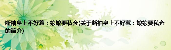 本文关于断袖皇上不好惹:娘娘要私奔的简介就讲解完毕,希望对大家有所帮助。