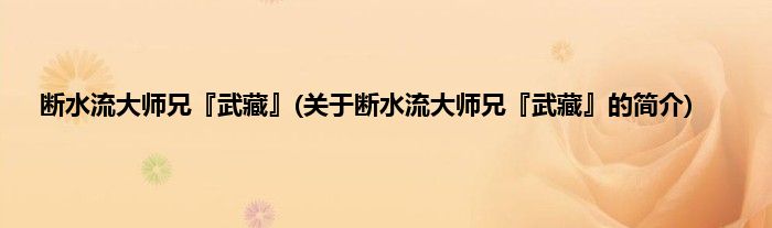 本文关于断水流大师兄『武藏』的简介就讲解完毕,希望对大家有所帮助。