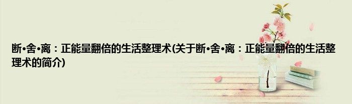 本文关于断·舍·离:正能量翻倍的生活整理术的简介就讲解完毕,希望对大家有所帮助。