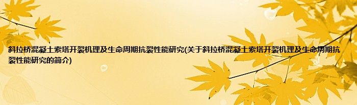 本文关于斜拉桥混凝土索塔开裂机理及生命周期抗裂性能研究的简介就讲解完毕,希望对大家有所帮助。