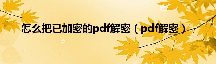 大家好,精选小编来为大家解答以上问题。怎么把已加密的pdf解密,pdf解密很多人还不知道,现在让我们一起来看看吧!