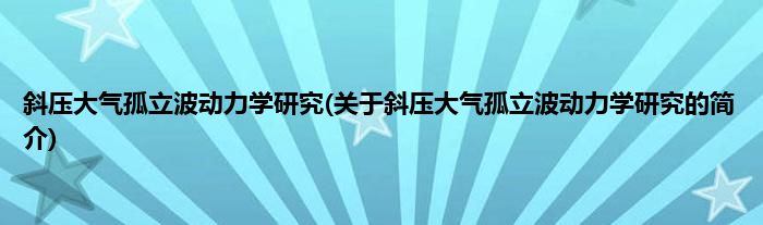 本文关于斜压大气孤立波动力学研究的简介就讲解完毕,希望对大家有所帮助。