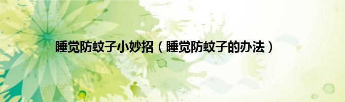 一、 睡觉防蚊子的办法