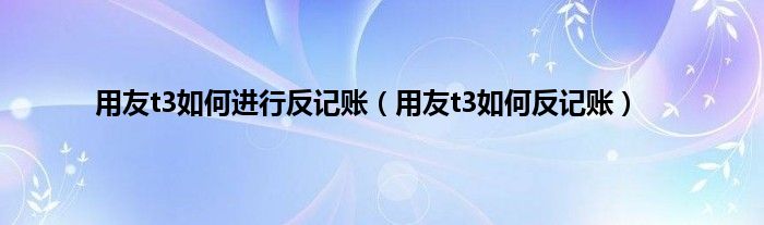 大家好,精选小编来为大家解答以上问题。用友t3如何进行反记账,用友t3如何反记账很多人还不知道,现在让我们一起来看看吧!