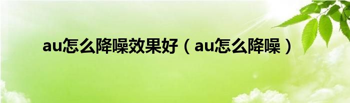 大家好,精选小编来为大家解答以上问题。au怎么降噪效果好,au怎么降噪很多人还不知道,现在让我们一起来看看吧!