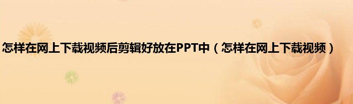大家好,精选小编来为大家解答以上问题。怎样在网上下载视频后剪辑好放在PPT中,怎样在网上下载视频很多人还不知道,现在让我们一起来看看吧!