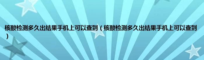 核酸检测多久出结果手机上可以查到(核酸检测多久出结果手机上可以查到)