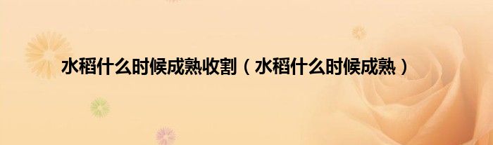 大家好,小常来为大家解答以上问题。水稻什么时候成熟收割,水稻什么时候成熟很多人还不知道,现在让我们一起来看看吧!