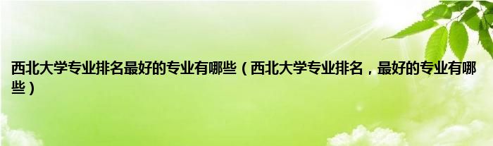 大家好,小常来为大家解答以上问题。西北大学专业排名最好的专业有哪些,西北大学专业排名,最好的专业有哪些很多人还不知道,现在让我们一起来看看吧!