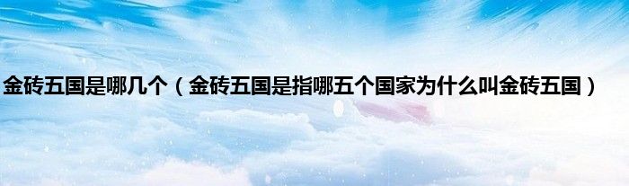 金砖五国是指巴西、俄罗斯、印度、中国及南非共和国五个有希望在几十年内取代七大工业国组织成为世界最大经济体的国家。这个简称原称「金砖四国」,来自这四个国家的英文国名开头字母所组成的词BRIC(Brazil、Russia、India、China),其发音类似英文的「砖块」(BRICK)一词。2010年12月24日,中国利用目前担任金砖四国组织轮值主席之便,根据金砖四国成员国达成的协议,邀请南非加入未来将称为金砖五国(BRICS)的组织,成为正式成员,「金砖四国」正式升格为「金砖五国」