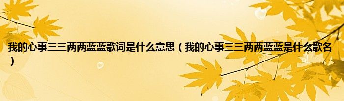 大家好,小常来为大家解答以上问题。我的心事三三两两蓝蓝歌词是什么意思,我的心事三三两两蓝蓝是什么歌名很多人还不知道,现在让我们一起来看看吧!
