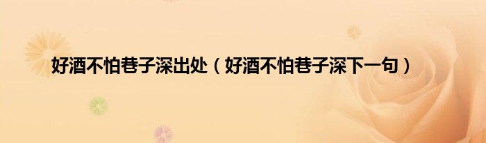 大家好,小常来为大家解答以上问题。好酒不怕巷子深出处,好酒不怕巷子深下一句很多人还不知道,现在让我们一起来看看吧!