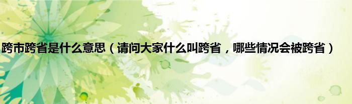 大家好,小常来为大家解答以上问题。跨市跨省是什么意思,请问大家什么叫跨省,哪些情况会被跨省很多人还不知道,现在让我们一起来看看吧!