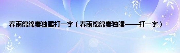 答案是“一”。因为“春雨绵绵”,意味着没有了太阳,春字没有下面的那个“日”字,就剩下上面的部分。“妻独睡”,则表示丈夫不在身边了,拿开“夫”字,剩下的不就是这个“一”字垍