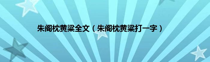 大家好,小常来为大家解答以上问题。朱阁枕黄粱全文,朱阁枕黄粱打一字很多人还不知道,现在让我们一起来看看吧!