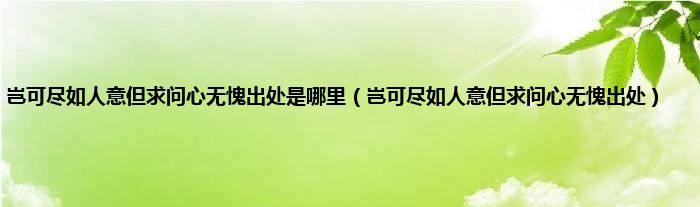 大家好,小常来为大家解答以上问题。岂可尽如人意但求问心无愧出处是哪里,岂可尽如人意但求问心无愧出处很多人还不知道,现在让我们一起来看看吧!