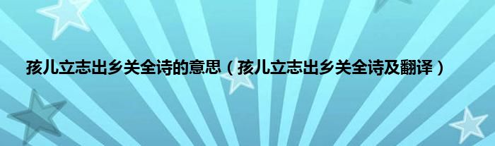 大家好,小常来为大家解答以上问题。孩儿立志出乡关全诗的意思,孩儿立志出乡关全诗及翻译很多人还不知道,现在让我们一起来看看吧!